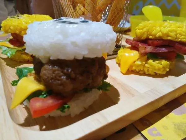 米漢堡分三種口味:漢堡肉、培根、蝦排。