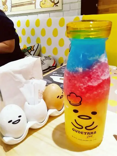 沒想到蛋黃哥也趕流行,竟然有漸層果汁。