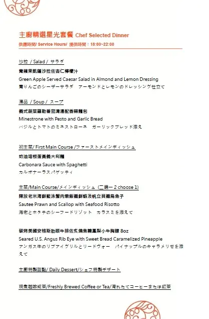 ▲GUSTOSO 義大利餐廳(慕軒飯店)菜單