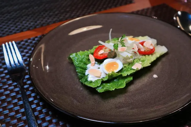 ▲青蘋果凱薩沙拉佐杏仁檸檬汁 (主廚精選星光套餐)