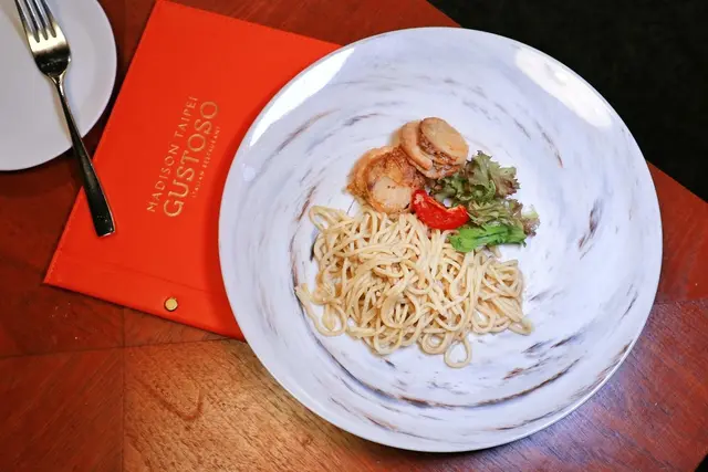 每一根麵條皆完美吸附了鯷魚與橄欖帶著辣感與蒜香交織出的濃郁香氣與滋味,佐上一大顆充滿海味Q彈鮮甜的帆立貝,非常滿足。