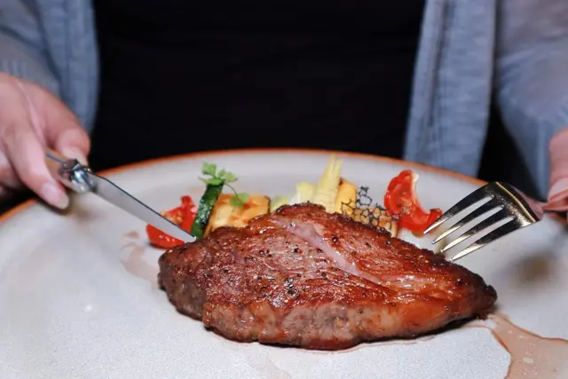 選擇5分熟度,略帶點血水,切下去柔嫩中帶筋感,毫不費力,
