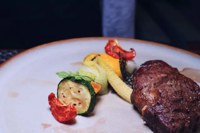 ▲交錯著吃牛排與炙烤後的時蔬,比較不會膩口,