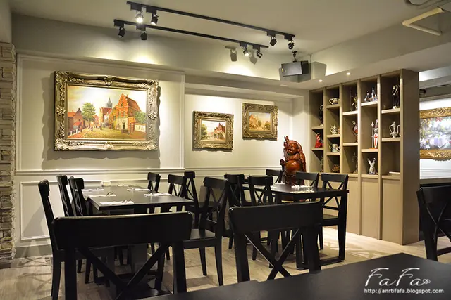 室內裝潢看起來素雅居家不是特別花俏,重點是放在老闆的收藏品,左側有裱框畫作 ,