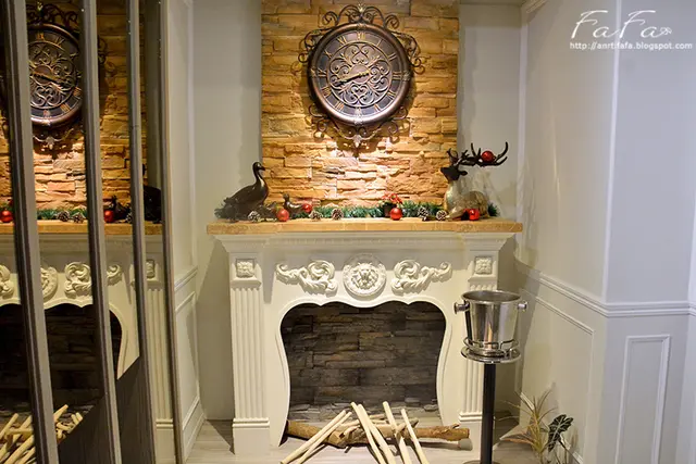不過讓我訝異的是老闆將樓梯旁平台塑造成聖誕佳節的壁爐,很有趣。