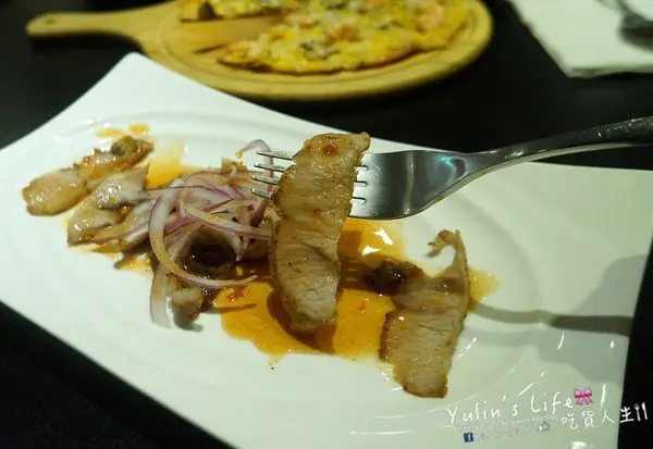 鮮嫩脆口多汁的松阪豬,搭配店家特調的醬汁,帶著甜甜辣辣的滋味好過癮唷! Yulin覺得份量上略少~