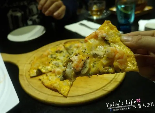 非常脆口,感覺像是吃餅乾,上面還有鮮蝦 洋蔥 磨菇,更豐富了口感,起司香不斷的在嘴裡亂竄,好迷人