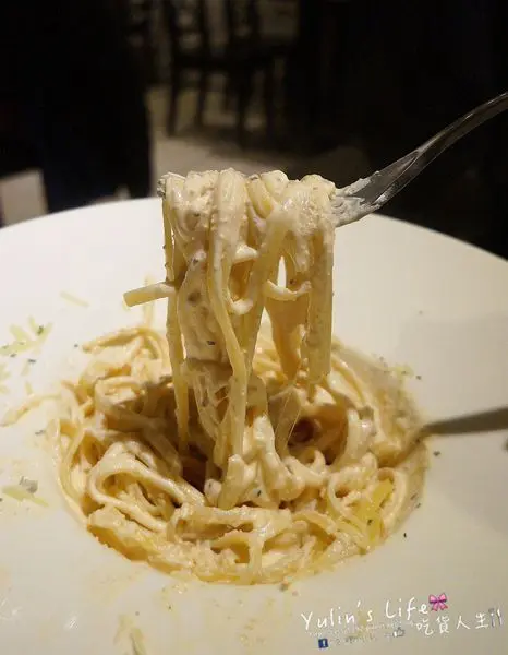每次吃義大利麵Yulin至少有一樣是白醬口味,濃郁的白醬巴附在每條義大利麵上,