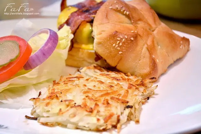 漢堡肉厚實飽滿,不過當天吃的偏乾且沒什麼湯汁,肉質較鬆散些,特別的是麵包酥脆口感有一點點像餅乾。