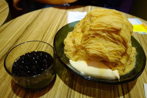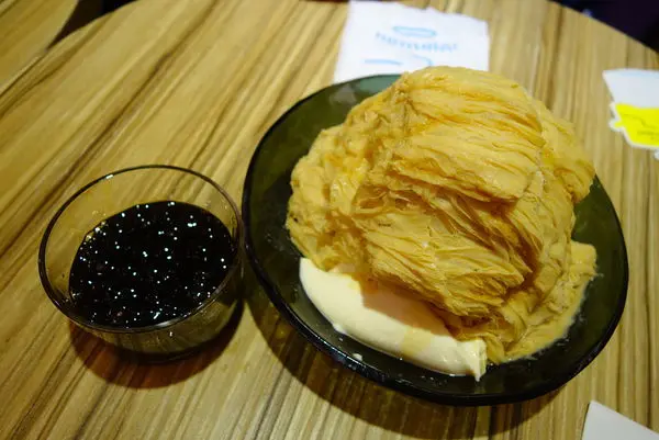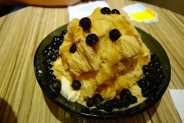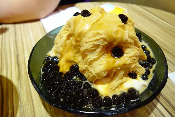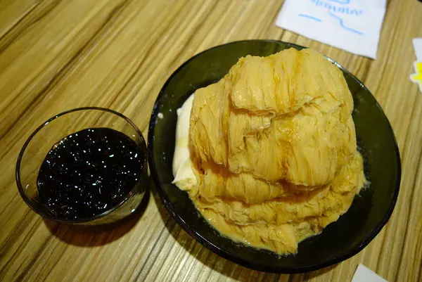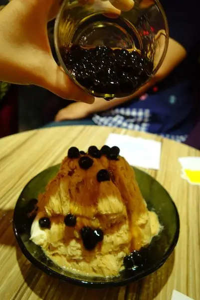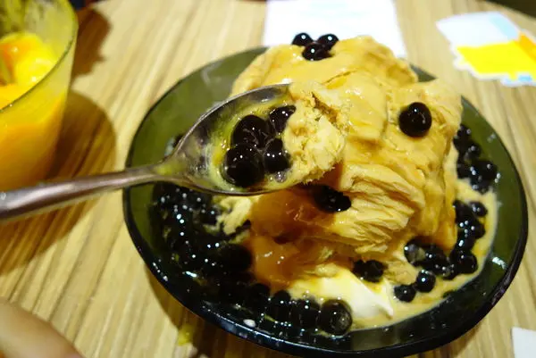 第一次吃珍珠奶茶口味的冰 既是期待又怕受傷害! 怕期待太高 失望愈高~ 看來我是多慮了 真的是好吃到不行 本來還在想為什麼品名是棉花甜 原來是吃起來真的有如在吃棉花般細密的口感 棉密到不行! 一層又一層的雪花冰帶著茶香味 但卻沒有奶茶給人的甜膩感 而且一入口整個嘴巴爆滿了淡淡的茶香味 店家選用黑糖珍珠也幫這冰加了不少分 黑糖口味的珍珠很Q 黑糖的香味更是噗鼻 不會因為放在冰旁邊而變硬 還是一樣QQ的 整個非常的搭~難得吃冰的我們 都還沒有吃完 就說下次還要再來吃別的口味