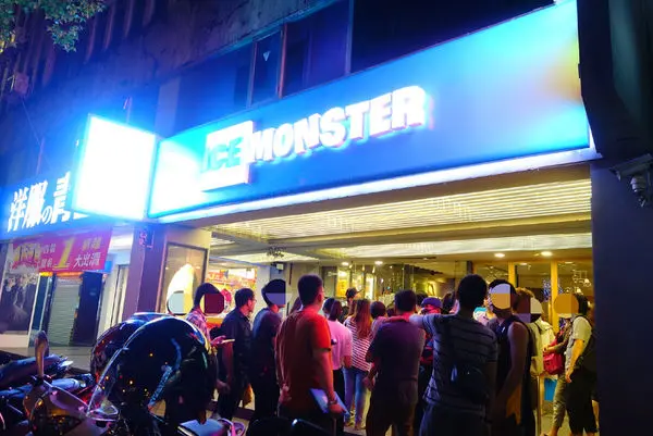 其實好久以前就有路過Ice Monster 當時店門口一堆人 引起了我的注意 心想這兒是發生了什麼事嗎 怎麼會有一堆人 而且人已多到人行道上了 仔細一看 才知原來是賣冰的! 剛好跟友人到東區吃完飯 餐後想來個甜點 於是一路從忠孝SOGO步行到Ice Monster 距離雖然不算近 不過邊走邊聊天其實就還滿快的! 真的不跨張 雖然是星期天晚上 時間已近晚上9點了 店內滿座 & 門口依舊在排隊 當然啦 想吃的我們也加了排隊陣容!