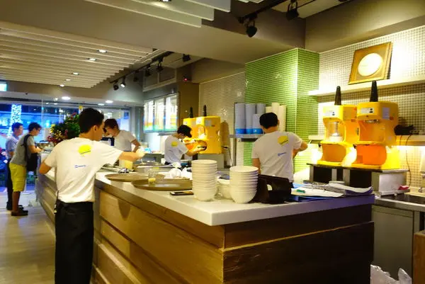 還沒走到店門口遠遠就看到有隊伍 友人問: 該不會是前面那家吧? 我回答~應該是! 想吃就乖乖去排隊吧 還好店家位子多 動作也很迅速,在排隊時服務人員就已遞上Menu讓我們先看想吃什麼 選好立刻用Pad 幫我們點餐 等帶位入座時 在一入店的左側先結帳就可以等著吃冰了! 以冰品店來說 我覺得環境很不錯 雖然店內滿座 但至少到訪當天 我們坐的位子 還滿舒適的 上餐速度也非常的快!