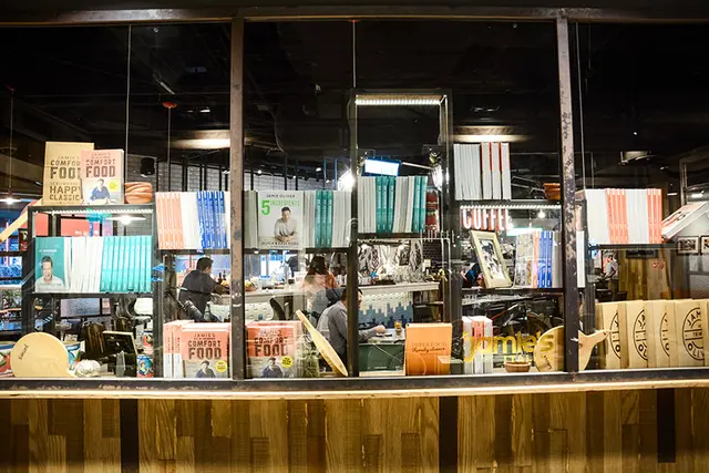 靠近走道玻璃櫥窗擺放著近期Jamie Oliver的食譜著作,一種在書店裡的愜意感。