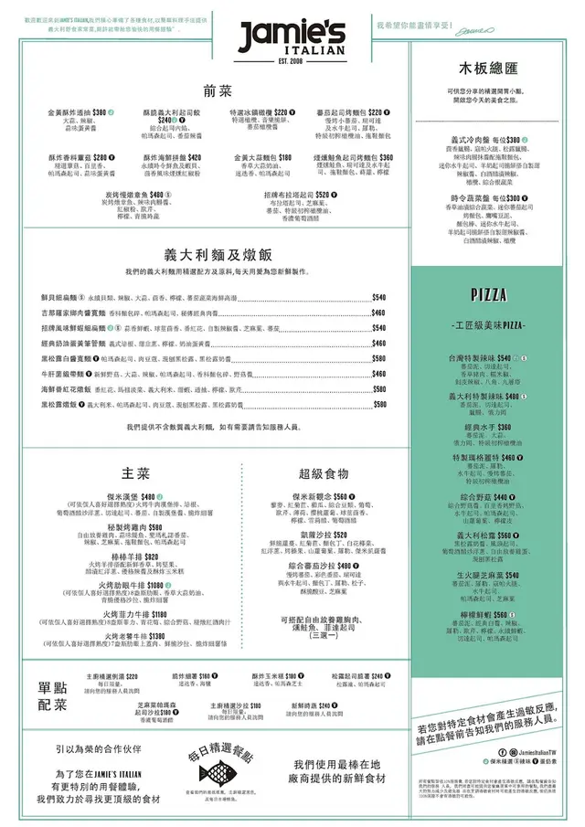 Jamie's Italian餐廳營運問題最近一直躍上新聞吵得沸沸揚揚,關於食品供應商與店面租金等因素帶來的高營運成本讓餐廳負荷沉重,不得不關閉英國的12間分店,但其實與海外分店沒有太直接的衝擊,反到藉此機會重新調整,開始著重菜式設計,並將原本英式義大利口味講求食材原味的簡約主義轉而符合在地口味,同樣秉持英國方面注重材料採購認證的理念,主廚與Jamie Oliver一來一往討論後所誕生的新菜色,在台灣才吃得到的專屬風味。