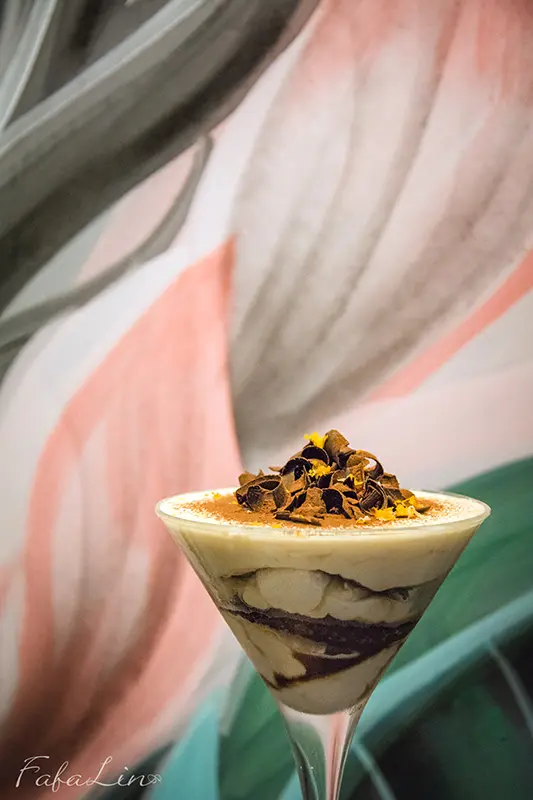 海綿蛋糕、KIMBO濃縮咖啡、馬斯卡彭起司、鮮奶油、柳橙皮、巧克力刨片