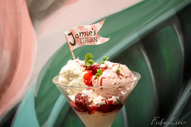 先前在Jamie's Italian吃到的提拉米蘇是方形蛋糕,當時吃得口感不太讓人滿意,這次改版後看起來好優雅,完全沒有添加酒精,以濃縮咖啡與馬斯卡彭起司來呈現最原始的滋味,再以70%巧克力刨片與橙皮做搭配,在柔滑奶香與咖啡香氣中,突如其來竄出的橙香味其實還蠻畫龍點睛,有清新感。