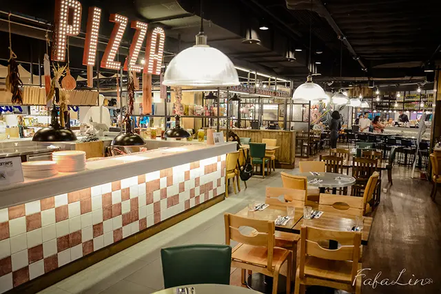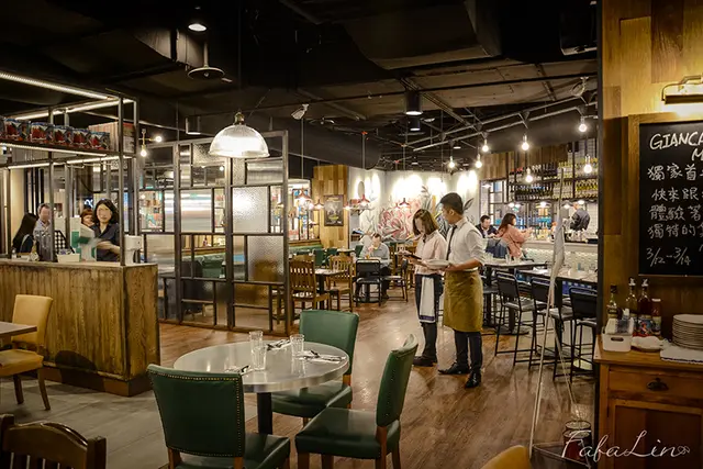 我個人蠻喜歡Jamie's Italian餐廳內裝潢,每個區域由不同的家具擺設自成一區,每跨一步仿佛可感染不同的歡聚效果。半開放的方式讓人與廚房零距離,披薩製作區在眼前,比料理節目還逼真。