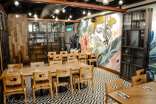 稍微在店內晃一下,很難不注意到牆面上讓人驚艷的塗鴉藝術。其實世界各地的Jamie's Italian餐廳都有不同的餐廳設計來表現各地特色,台灣部分是邀請香港的塗鴉藝術家Garatoes來設計媽祖壁畫,融合現代風格將傳統的媽祖意象傳達出來,對於四面環海的台灣來說是很重要的情感連結。此空間刻意隔出來可與其它用餐空間做區別,並有兩處進出口,蠻適合團體用餐。
