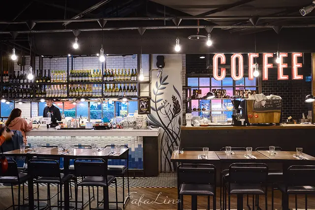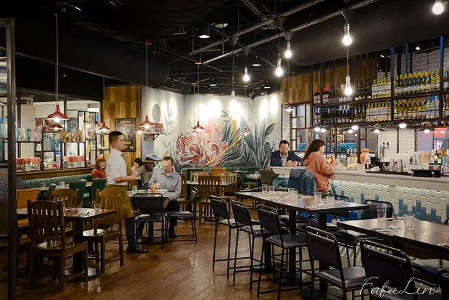 餐廳另一半空間是包含製作飲料的吧檯,吧檯旁邊可通往開放式的戶外用餐區。