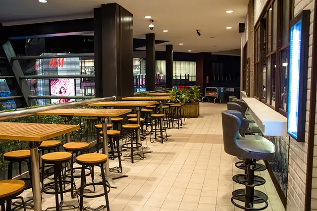 戶外座位區設在長廊上,與微風松高三樓以及新光三越A8、A9館三樓互通很方便。