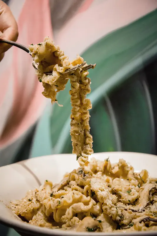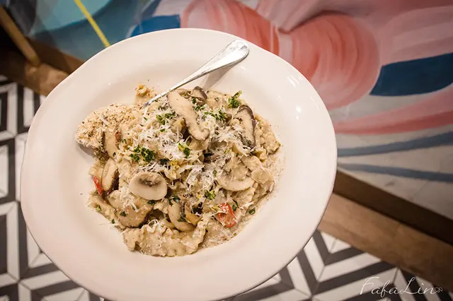 每日現做的義大利麵條有許多款式,對應不同的醬汁也有其適合的麵條形狀與口感,這道濃厚蘑菇醬與容易附著醬汁的緞帶麵一拍即合,邊咀嚼邊讓濃稠醬汁慢慢在嘴裡散開,對於喜歡麵條有口感的我,吃得津津有味,趁熱吃完最佳。