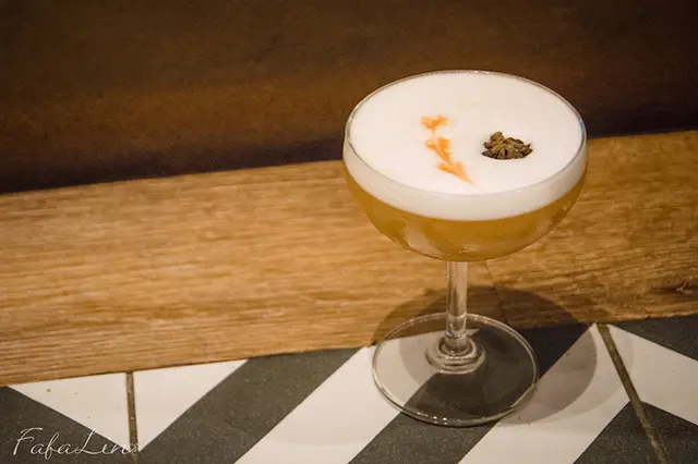 檸檬汁、八角、苦精、蛋白、威士忌、杏桃酒