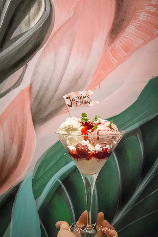 先前在Jamie's Italian吃到的提拉米蘇是方形蛋糕,當時吃得口感不太讓人滿意,這次改版後看起來好優雅,完全沒有添加酒精,以濃縮咖啡與馬斯卡彭起司來呈現最原始的滋味,再以70%巧克力刨片與橙皮做搭配,在柔滑奶香與咖啡香氣中,突如其來竄出的橙香味其實還蠻畫龍點睛,有清新感。