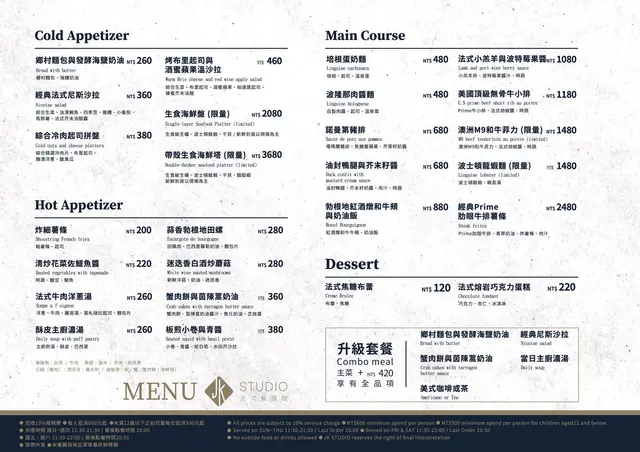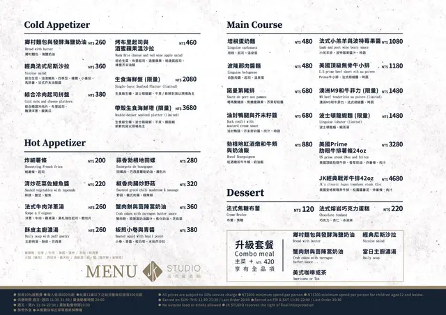 來【JK STUDIO法式餐酒館】用餐,提前加入官方LINE(@jk_studio)會員