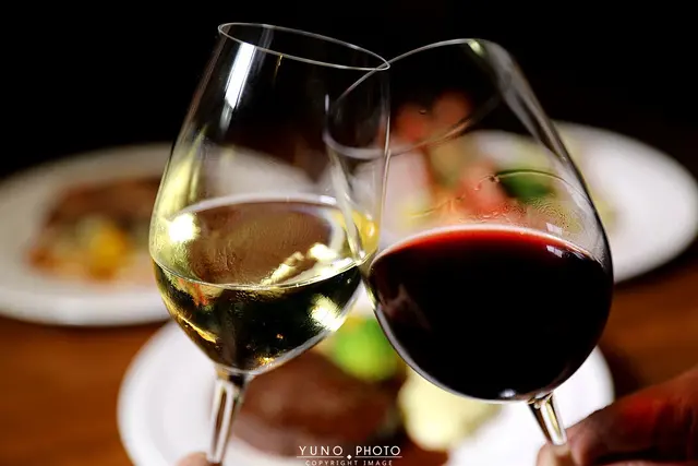 享受著精緻的法式料理 與此同時 啜飲一口紅白葡萄酒 讓美酒的醇香在口中綻放