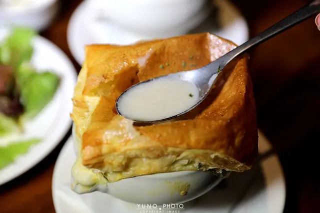 每一口都是香濃與細柔的極致享受 覆蓋在濃湯上的酥皮烤得金黃酥脆