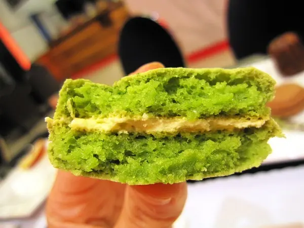 馬卡龍上面灑著抹茶粉,有著淡淡抹茶香