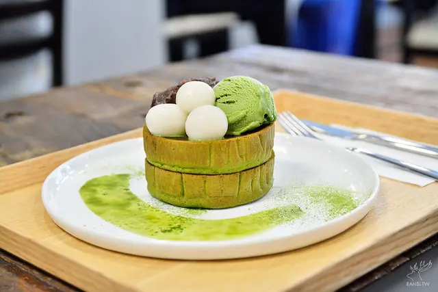 但下方的抹茶鬆餅吃起來很乾很乾(當時也聽到別桌客人有同樣的感受),上方的鬆餅因蜂蜜搶味有蓋住茶香,下方少了蜂蜜影響有好一點,但仍不覺得有特色或是美味之處。