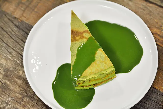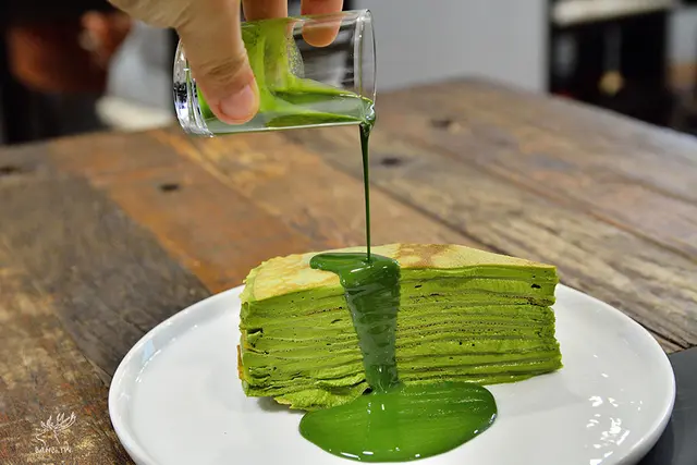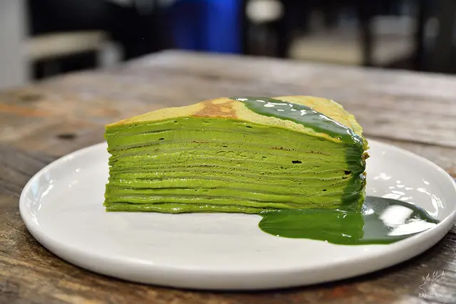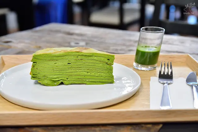 原本想吃焙茶千層,但現在並未供應,才改點抹茶千層,另外有附一抹茶糖漿。