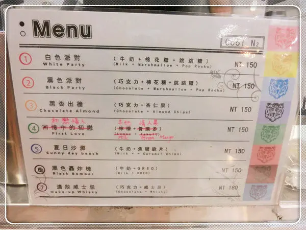 黑色派對,在杯子的側邊上有價格和時間及品名可以確認避免拿錯。