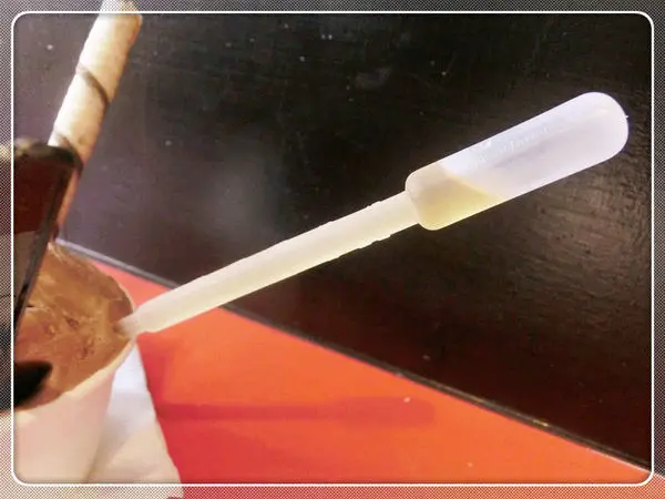 整支滴管的酒,慢慢滲入巧克力,讓您愛上吃分子雪糕!