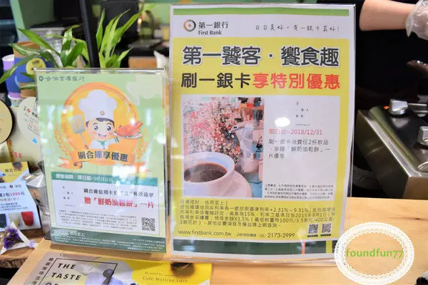 以合庫.樂天或第一銀行的卡消費任2杯飲品贈鮮奶油鬆餅一片