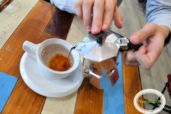 這邊的每一杯咖啡就都是採用摩卡壺手工沖煮