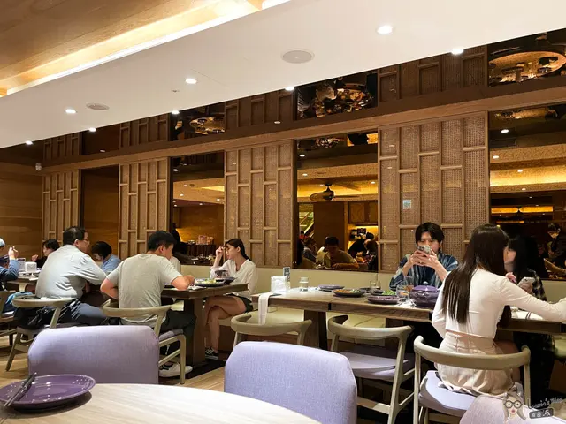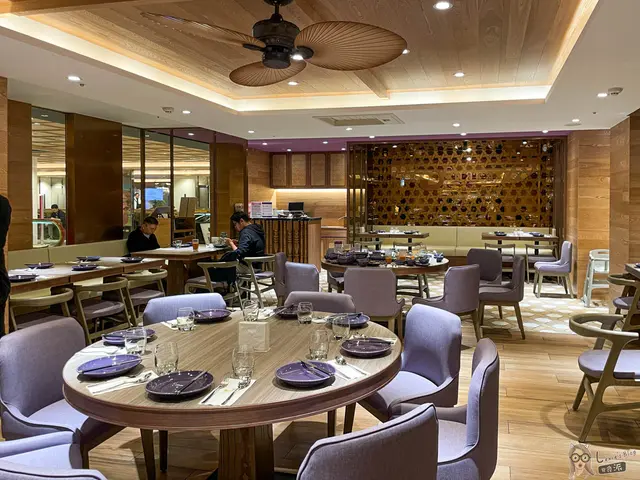 換新裝的NARA Thai Cuisine台北忠孝 SOGO店延續泰國皇族鍾愛的木質調風格,採用大面積的琥珀色玻璃,視野寬敞漂亮,不改原先的主視覺配色,木質調配上紫色的沙發與餐盤就是NARA Thai Cuisine正字記號。