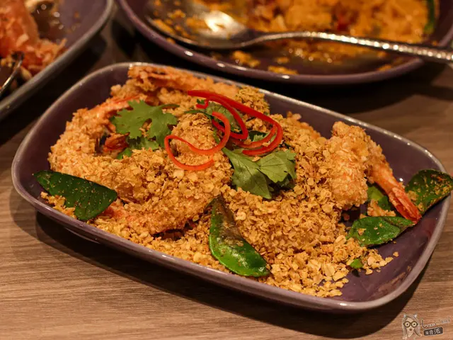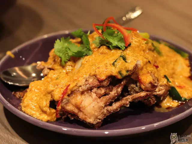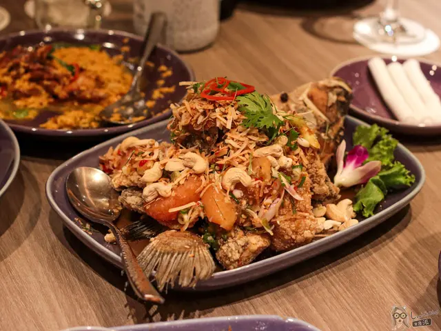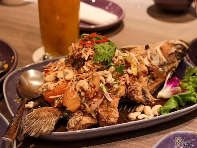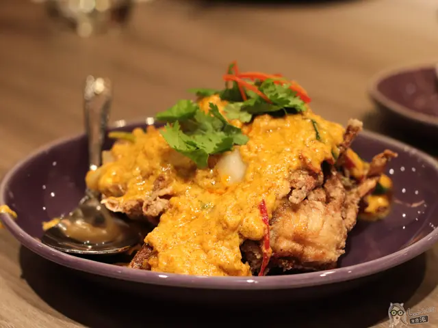 這道是全台獨家菜色,如果每次到泰式餐廳都點檸檬魚覺得很膩,那可以試試看這個。使用新鮮鱸魚佐特製柚香醬,魚肉是整條炸過的,比較有口感,配料是葡萄柚,配著吃帶點酸度和果香,第一次看到這種搭配。