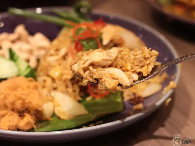 泰式炒飯也是必點的吧!炒飯也是偏重口味,米粒顆顆分明,軟硬適中,搭配腰果等配料,口感豐富度更高。