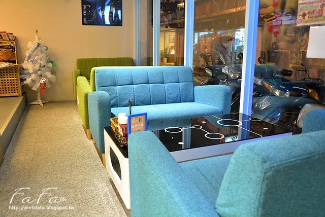 進到門口的小玄關處,就可看到靠窗的藍綠沙發區,剛開始看到經典的藍綠配,