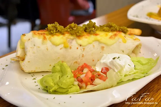 墨西哥捲餅皆附美生菜、酪梨醬、莎莎醬、酸奶、薯條