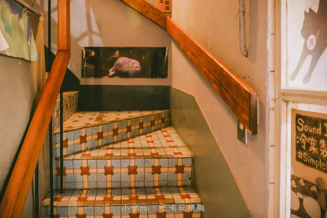 NUKI Coffee有兩層的用餐空間,往二樓走的這個樓梯又小又陡,花磁磚拼貼出來的階梯就是阿嬤家的樓梯啊,上樓記得抓著旁邊的扶手比較安全