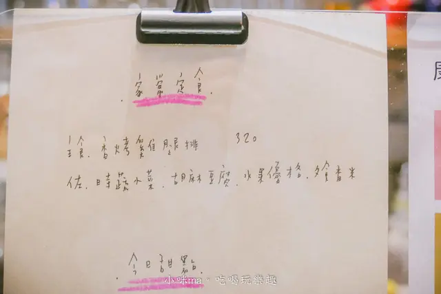 他們家的菜單非常可愛,都是手繪的,但是也讓我不知道該點什麼,哈哈,有點神祕又複雜,除了有家常定食外,也有麵包套餐、布丁、各式飲品、手作蛋糕,每天提供的定時囃單跟蛋糕都會張貼在櫃檯,點餐方式則是自行過來櫃台點餐,所以不收服務費喔
