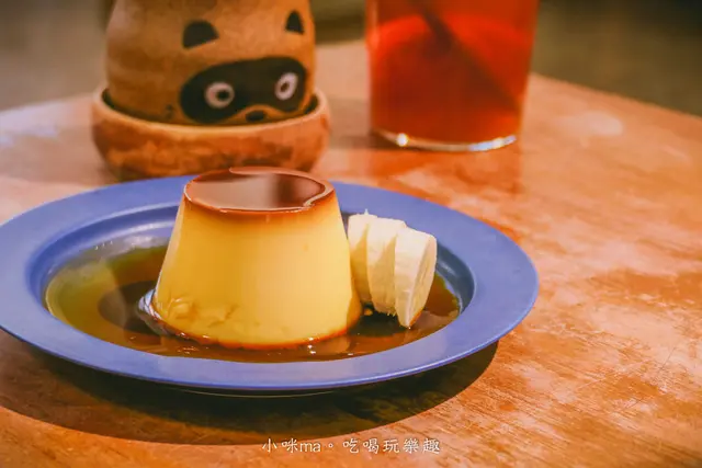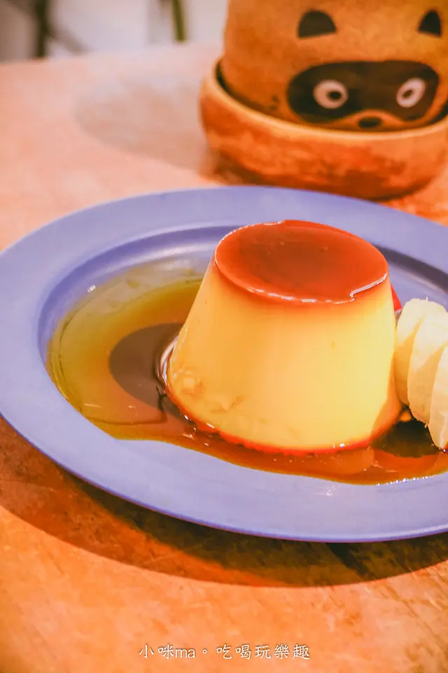 本來滿心期待可愛的布丁上桌,然後一上桌是這樣,我有一點傻眼⋯⋯,結果是我點錯了,你如果想要可愛的厭世陶盤裝盛就要點「水果布丁」,因為我本身也沒多愛吃水果,就點了「焦糖布丁」,然後就是這樣單調的模樣
