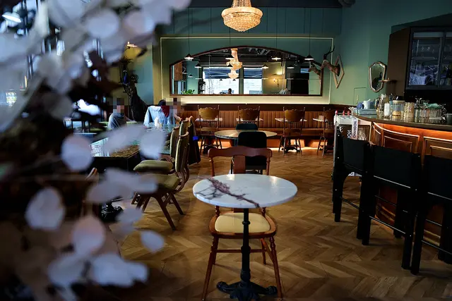 華麗的水晶吊燈與精緻的大理石桌面 白天優雅舒適 晚上浪漫迷人 讓這裡成為不少網美、網帥拍照的夢幻場景