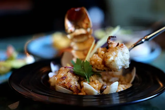 這道以鮮甜的炙燒龍蝦搭配吸滿湯汁的義式燉飯 完美詮釋奢華與美味 整隻龍蝦尾經白酒調味