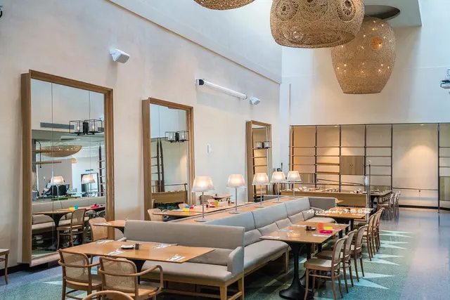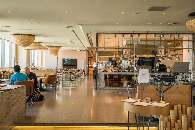 用餐區圍繞著吧台,沙發座椅雖然沒有緊鄰窗邊,但用餐格外舒適