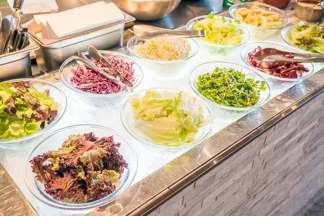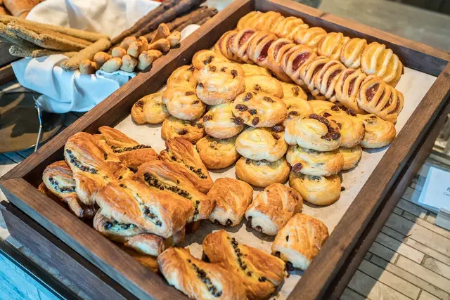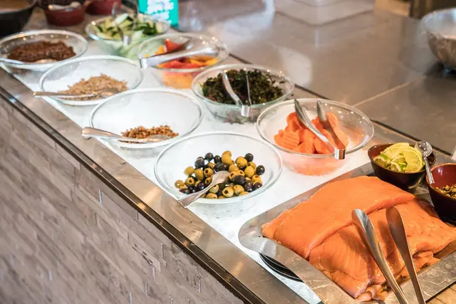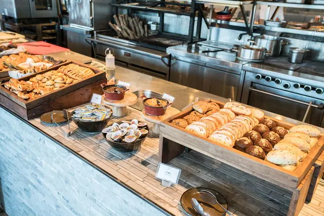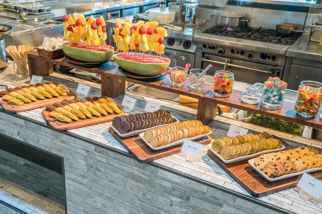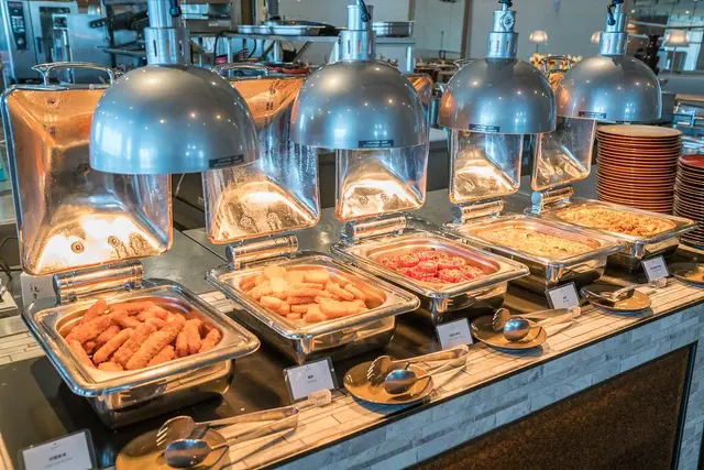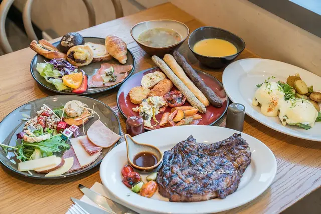 無限供應的熱食、麵包、沙拉、湯品、甜點蛋糕、現做美式鬆餅、切片起司、火腿...吃到飽