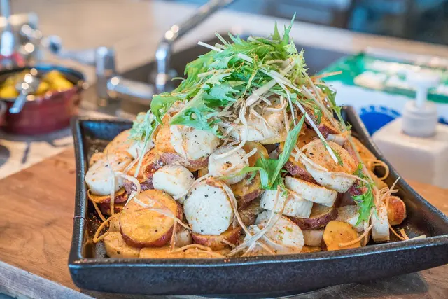 經原木燒烤後,外皮酥脆、內層肉質軟嫩多汁,並帶有煙燻香氣